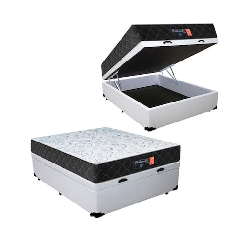 Cama Box Baú Casal Sintético Branco com Colchão Espuma D33 Marrocos 30cm