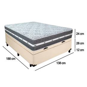 Cama Box Baú Casal Sintético + Colchão Anjos Black Graphite Molas Ensacadas 138x188x64cm Bege - Cama Box Baú Casal com Colchão de Molas Ensacadas