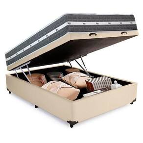 Cama Box Baú Casal Sintético + Colchão Black Graphite Molas Ensacadas 138x188x64cm
