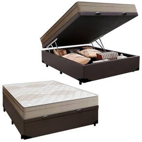 Cama Box Baú Casal Sintético + Colchão de Molas Ensacadas Portobel Ipanema - 138x188x66cm