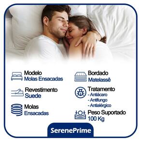 Cama Box Baú Casal Sintético + Colchão De Molas Ensacadas - SerenePrime - 138x188x62cm Transforme o seu quarto com a Cama Box Baú Casal Sintético SerenePrime, que alia sofisticação e conforto. Com um acabamento em tecido sintético macio e elegante, esta cama box baú proporciona um visual moderno e aconchegante, perfeito para qualquer ambiente. O colchão de molas ensacadas oferece suporte individualizado, moldando-se ao corpo e garantindo noites de sono mais tranquilas, sem transferência de movimentos. Essa tecnologia, aliada ao conforto do estofamento, faz da SerenePrime uma escolha que equilibra beleza, conforto e resistência. Especificações Técnicas Colchão: Marca: SerenePrime Modelo: Molas Ensacadas Proteções: Antiácaro - Antialérgico Tecido de Revestimento: Bordado Matelassê Forração Revestimento: Malha Importada Dimensões do Colchão (largura x comprimeento x altura) Casal: 138x188x18cm Especificações Técnicas Base Box Baú: Marca: SerenePrime Material: Madeira tratada Proteções: Anticupim - Antimofo Peso máximo recomendado: até 150Kg (por pessoa) Revestimento: material (tecido) sintético Altura da base: 38cm Altura dos pés: 6cm Comprimento: 188cm Largura: 138cm *As cores do produto podem variar de acordo com o monitor, a iluminação do ambiente e a sua percepção visual. *Confira as dimensões do produto e certifique-se de que passará normalmente por supostos elevadores, portas, escadas e/ou corredores de sua residência. *Verifique nossas politicas internas para que não haja nenhuma dúvida no processo de entrega ao finalizar a compra, pois não fazemos a montagem e desmontagem do produto e não nos responsabilizamos por subir escadas, corredores e elevadores ou transporte por içamento pelo lado de fora do prédio. Marca: Não Informado Marca: Não Informado Marca: Não Informado