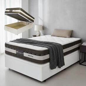 Cama Box Baú Casal Sintético + Colchão Esplendor Molas Ensacadas Luckspuma 138x188x75 Cor:branco