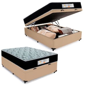 Cama Box Baú Casal Sintético + Colchão Molas Ensacadas SerenePrime Sonnolux 138x188x69 - Bege