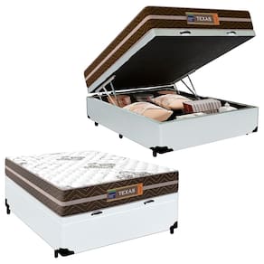 Cama Box Baú Casal Sintético + Colchão Molas Ensacadas Texas Prime Colchões 138cm Branco - Suporta Até 120 Kg Por Pessoa - Marrom | Branco