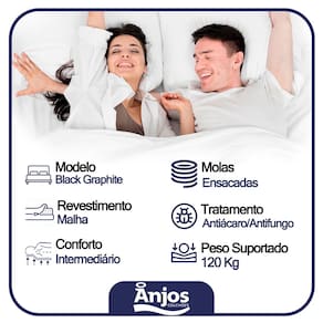 Cama Box Baú Casal Suede + Colchão Anjos Black Graphite Molas Ensacadas 138x188x64cm O Colchão Casal Anjos com Molas Ensacadas 138x188 Black Graphite é mais do que apenas uma peça de mobiliário para dormir; é uma experiência de conforto e qualidade incomparável. Desenvolvido com precisão e cuidado pela renomada marca Anjos, este colchão promete uma noite de sono revigorante e relaxante, como se estivesse sendo acariciado pelas próprias nuvens. O destaque deste colchão reside em seu sistema de molas ensacadas, que oferece um suporte individualizado para cada parte do corpo, garantindo uma distribuição equilibrada do peso e uma adaptação perfeita aos contornos naturais. Isso significa que, mesmo que você tenha um parceiro de sono, não sentirá os movimentos dele durante a noite, permitindo que ambos desfrutem de uma tranquilidade ininterrupta. **As cores do produto podem variar de acordo com o monitor, a iluminação do ambiente e a sua percepção visual.** **Confira as dimensões do produto e certifique-se de que passará normalmente por supostos elevadores, portas, escadas e/ou corredores de sua residência** Características Colchão: Colchão com 24cm de altura, tecido do tampo poliester, espuma D26 e molas ensacadas, colchão indicado para biotipos até 120kg Dimensões: 138x188x24cm Peso (Kg): 36 kilos Marca: Anjos Colchões Tamanho: Casal Cor: Preto Modelo: Black Graphite Material: Revestimento do tampo em tecido 100% poliester, faixa em tecido poliester liso; estofamento em espuma D26; molas ensacadas 2.0mm; base em poliestireno expandido (EPS) com isolamento termico e tratamento actigard (anti-acaros, bacterias e fungos). Tipo (Espuma, Densidade, Mola): Molas Ensacadas Garantia: 12 Meses Itens Inclusos: 1 Colchão Características do Baú: - Estrutura Interna: Estrutura em madeira 100% de Reflorestamento; - Estrutura Externa: Suede; - Tratamento Antiácaro: Sim; - Tratamento Antialérgico: Sim; - Saida de Ventilação: Não; - Ortopedico: Não; - Tecido Antiderrapante: Não; - Suporta até (kg): 150 Kg; - Necessita Montagem: Não. - Altura: 28cm; - Largura: 138cm; - Comprimento: 188cm; - Altura dos Pés: 12cm; Confira as dimensões do produto e certifique-se de que passará normalmente por elevadores, portas, escadas ou corredores de sua residência, pois é de sua total responsabilidade caso o produto tenha dimensões superiores ao local de acesso da entrega dificultando ou impossibilitando que a mesma seja concluída. Não nos responsabilizamos, no ato da entrega, por subir escadas, corredores e elevadores ou transporte por guincho em apartamentos. Imagens meramente ilustrativas a cor, pode variar de acordo com a iluminação do ambiente.