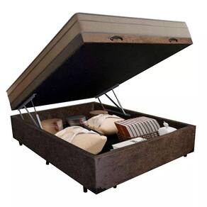 Cama Box Baú Casal Suede + Colchão De Molas Ensacadas Portobel Ipanema - 138x188x66cm Marrom