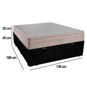 Cama Box Baú Casal Suede Bipartido Preto + Colchão Serene Molas Ensacadas 65x138x188