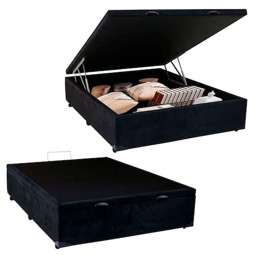 Cama Box Baú Casal Suede Serene Preto 138x188x44