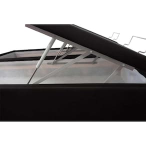 BENEFÍCIOS EXTERNO DA CAMA BOX Forração de Revestimento da Cama Box - Acabamento em Couríno Altura da Cama Box com os Pés - 42 cm de altura Detalhes Gerais da Cama Box - Pés com Rodízios - Amortecedores de Articulação - Pés em ABS/PVC - Articulação em Aço com Sistema Basculante