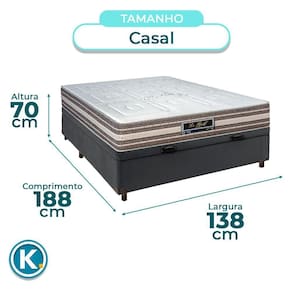 Suporte de até 120kg por pessoa, ideal para uso diário com firmeza equilibrada Base baú casal com 37cm de altura e amplo espaço interno para organização