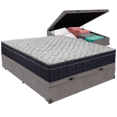 Cama Box Baú Cinza e Colchão Airtech 150 Espuma D45 Viúvo Ortobom