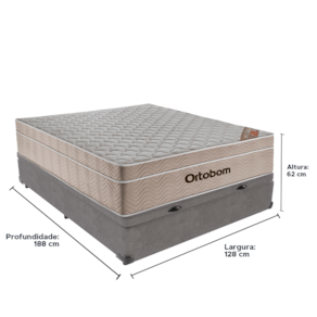 O conforto que sua casa precisa e a qualidade que você merece está na Kazamix!Durma com a Qualidade e Conforto que Você Merece!O Colchão Airtech SpringMolas Ensacadas Ortobom é a escolha perfeita para quem busca conforto e suporte. Equipado com um sistema de molas ensacadas, ele oferece suporte individualizado, garantindo o alinhamento correto da coluna e reduzindo os impactos dos movimentos durante o sono. O Euro Pillow proporciona uma camada extra de maciez, garantindo um sono ainda mais revigorante.Seu revestimento em tecido de malha e matelassê, junto com a lateral em suede, proporcionam um visual sofisticado, elevando ainda mais a estética do seu dormitório e agregando elegância ao ambiente.Além disso, o colchão conta com proteção antiácaro e antialérgico, criando um ambiente de sono mais saudável e ideal para quem busca bem-estar. Produzido com materiais de alta qualidade e a confiabilidade da Ortobom, líder em tecnologia e durabilidade, ele é feito para durar, oferecendo anos de conforto e suporte.Modelo: Airtech SpringMolas EnsacadasMarca: OrtobomTamanho: ViúvoDimensões: 128x188X25 (Largura x Comprimento x Altura)Conforto: MacioSistema: Molas EnsacadasPillow: Euro PillowPeso Máximo recomendado: 120 kg (Por pessoa)Proteções: Antiácaro, antialérgico, antifungo, antimofoGarantia: 1 ano pelo FabricanteO conforto que sua casa precisa e a qualidade que você merece está na KazamixAproveite cada metro quadrado do seu dormitório com a Cama Box Baú!Projetada com madeira de reflorestamento reforçada, a Cama Box Baú é a escolha ideal para quem busca otimização de espaço e praticidade na organização do dia a dia.Com um baú generoso, ela oferece a solução perfeita para armazenar travesseiros extras, cobertores, malas e muito mais. Além disso, sua estrutura robusta suporta até 150 kg por pessoa, garantindo a sustentação ideal para o seu colchão e prolongando sua vida útil.O pistão a gás robusto proporciona uma abertura suave e segura do baú, oferecendo praticidade e resistência no uso diário. Para completar, o acabamento de alta qualidade combina perfeitamente com qualquer estilo de decoração, agregando elegância e versatilidade ao seu ambiente.Não perca tempo! Adquira agora mesmo sua Cama Box Baú e diga adeus à falta de espaço e desorganização.Marca: KazaMixModelo: BaúCor do Box: CinzaTamanho: ViúvoDimensões: 128X188X37 (Largura x Comprimento x Altura) Estrutura: MadeiraPeso máximo recomendado: 150 kg (Por Pessoa)Altura do Box: 32 cm Altura dos Pés: 5 cm Altura total: 37 cm Garantia: 03 mesesSelo Ecologicamente CorretoAtenção: Antes de finalizar sua compra, certifique-se de que as dimensões do produto sejam adequadas para serem transportadas pelos elevadores, portas, escadas e corredores de sua residência. Ressaltamos que não nos responsabilizamos pelo transporte do produto por meios específicos, como escadas, guinchos ou içamentos.