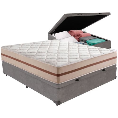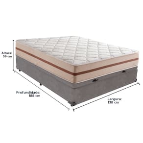 O conforto que sua casa precisa e a qualidade que você merece está na Kazamix!O Colchão Classic da Anjos é a escolha perfeita para quem busca o equilíbrio entre conforto, durabilidade e custo-benefício. Com molas ensacadas, proporciona suporte individualizado, garantindo noites de sono mais tranquilas e sem transferência de movimento. O conforto intermediário atende a diferentes preferências, enquanto o design clean, com superfície plana, traz um toque de modernidade ao ambiente.Além disso, conta com tratamento antiácaro, antialérgico e antifungo, promovendo um sono mais saudável e livre de alergias. Um investimento ideal para transformar suas noites e garantir bem-estar diariamente. Aproveite o conforto e a qualidade que você merece!Modelo: Classic 22Marca: AnjosTamanho: CasalDimensões: 138x188X22 (Largura x Comprimento x Altura)Conforto: IntermediárioSistema: Molas ensacadas Pillow: Não se AplicaPeso Máximo recomendado: 120 kg (Por pessoa)Proteções: Antiácaro, antialérgico, antifungo, antimofoGarantia: 1 ano pelo FabricanteO conforto que sua casa precisa e a qualidade que você merece está na KazamixAproveite cada metro quadrado do seu dormitório com a Cama Box Baú!Projetada com madeira de reflorestamento reforçada, a Cama Box Baú é a escolha ideal para quem busca otimização de espaço e praticidade na organização do dia a dia.Com um baú generoso, ela oferece a solução perfeita para armazenar travesseiros extras, cobertores, malas e muito mais. Além disso, sua estrutura robusta suporta até 150 kg por pessoa, garantindo a sustentação ideal para o seu colchão e prolongando sua vida útil.O pistão a gás robusto proporciona uma abertura suave e segura do baú, oferecendo praticidade e resistência no uso diário. Para completar, o acabamento de alta qualidade combina perfeitamente com qualquer estilo de decoração, agregando elegância e versatilidade ao seu ambiente.Não perca tempo! Adquira agora mesmo sua Cama Box Baú e diga adeus à falta de espaço e desorganização.Marca: KazaMixModelo: BaúCor do Box: CinzaTamanho: CasalDimensões: 138X188X37 (Largura x Comprimento x Altura) Estrutura: MadeiraPeso máximo recomendado: 150 kg (Por Pessoa)Altura do Box: 32 cm Altura dos Pés: 5 cm Altura total: 37 cm Garantia: 03 mesesSelo Ecologicamente CorretoAtenção: Antes de finalizar sua compra, certifique-se de que as dimensões do produto sejam adequadas para serem transportadas pelos elevadores, portas, escadas e corredores de sua residência. Ressaltamos que não nos responsabilizamos pelo transporte do produto por meios específicos, como escadas, guinchos ou içamentos.