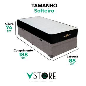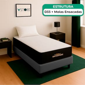 A tecnologia que a sua casa merece está na V-Store! O Conjunto Colchão Orthopedic + Base Box Baú Bravus da V-Store une conforto e funcionalidade. O colchão, com espuma D33 e suporte extra firme, oferece alinhamento ideal e proteção contra ácaros, alergias e fungos. A base box baú, com estrutura resistente e espaço interno, combina organização e estilo, otimizando seu dormitório com praticidade e elegância.Característica Do Colchão: Modelo: OrthopedicMarca: V-StoreTamanho: SolteiroDimensões: 88x30x188 (Largura x Altura x Comprimento)Conforto: Extra FirmeSistema: EspumaPillow: Não se aplicaPeso Máximo recomendado: 110 kg (Por pessoa)Proteções: Antiácaro, antialérgico, antifungo, antimofoGarantia: 12 Meses (Espuma)Característica Da Base: Marca: V-StoreModelo: BravusCor do Box: CinzaTamanho: SolteiroDimensões: 88x44x188 (Largura x Altura x Comprimento)Estrutura: MadeiraPeso máximo recomendado: 150 kg (Por Pessoa)Altura do Box: 38 cmAltura dos Pés: 6 cmAltura total: 44 cmGarantia: 12 Meses (Estrutura) / 3 meses (Tecido)Selo Ecologicamente CorretoAtenção:- Antes de finalizar sua compra, recomendamos que verifique se as dimensões do produto são adequadas para serem transportadas pelos elevadores, portas, escadas e corredores de sua residência. Ressaltamos que não nos responsabilizamos pelo transporte do produto por meios específicos, como escadas, guinchos ou içamentos.- É possível que hajam leves variações de cor de acordo com o dispositivo que está sendo utilizado como smartphones, computadores, monitores e outros.