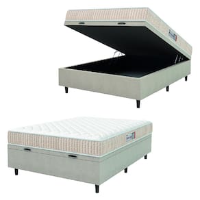 Cama Box Baú Colchão Casal Espuma D33 New Millenium 138x188x60cm Branco / Bege Hellen - Suporta até