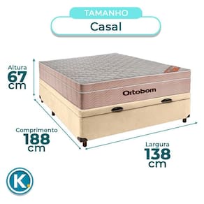Cama Box Bau + Colchão Casal Molas Ensacadas Airtech Ortobom Conjunto Casal Colchão Airtech + Cama Box Bau Colchão Ortobom Casal com 25cm de altura, ideal para conforto no uso diário