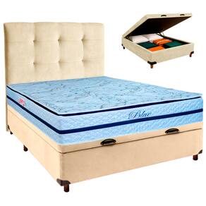 Cama Box Bau + Colchão Casal Molas Ensacadas Blue Paropas + Cabeceira Estofada - Nature | Off White | Gengibre