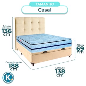 Conjunto Casal Colchão Blue + Cama Box BauColchão Casal com 32cm de altura, oferecendo conforto elevado e presença imponenteRevestido em poliéster resistente, com toque agradável e ótima durabilidadeSuporte para até 150kg, ideal para quem busca firmeza e resistênciaBase baú casal com 37cm de altura e amplo espaço interno para organizaçãoRevestimento em Veludo , fácil de limpar e com visual modernoEstrutura reforçada com capacidade para até 150KgFicha Técnica Colchão:Modelo: BlueMarca: ParopasTamanho: CasalTecido: PoliésterLargura: 138cmComprimento: 188cmAltura: 32cmSuporte de Peso: 150KgGarantia: 3 MesesFicha Técnica Cama Box Bau:Modelo: PopMarca: NatureTamanho: CasalTecido: VeludoLargura: 138cmComprimento: 188cmAltura: 30cmAltura dos Pés: 7cmMaterial dos Pés: MadeiraSuporte de Peso: 150KgPeso: 35KgGarantia: 3 MesesAtenção:Antes da compra certifique-se de que o produto passa por elevadores, portas e corredores.As transportadoras não realizam entregas por escadas ou içamentos.Caso o item não caiba no elevador, a entrega será considerada concluída no térreo do prédio.A cor e tonalidade do produto pode variar de acordo com o dispositivo que o usuário está acessando.