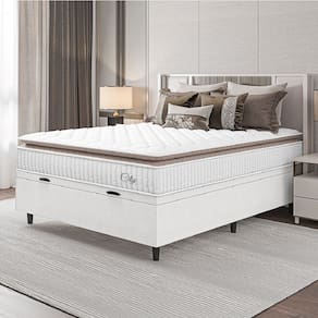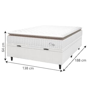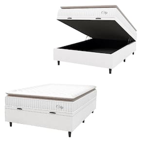 Cama Box Baú Colchão Casal Molas Ensacadas City Pillow Top 138x188x64cm Linho Branco / Bege Hellen - Suporta até 110kg por Pessoa