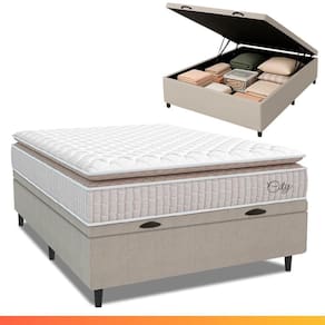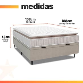 MODELO: Cama Box Baú Colchão Casal Molas Ensacadas City Pillow Top 138x188x64cm