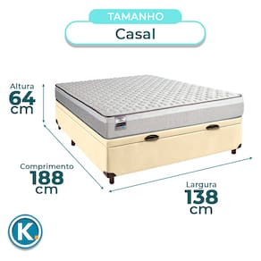 Conjunto Casal Colchão Hanover + Cama Box BauColchão Casal com 22cm de altura, ideal para conforto e praticidade no dia a diaRevestimento em Jacquard e Poliéster, unindo sofisticação e resistênciaSuporte de até 130kg, oferecendo firmeza e segurança para diferentes perfisBase baú Casal com 42cm de altura e amplo espaço interno para organizaçãoRevestimento em Material Sintético resistente, fácil de limpar e com visual modernoEstrutura reforçada com capacidade para até 150KgFicha Técnica Colchão:Modelo: HanoverMarca: InducolTamanho: CasalTecido: Jacquard/PoliésterLargura: 138cmComprimento: 188cmAltura: 22cmSuporte de Peso: 130KgGarantia: 3 MesesFicha Técnica Cama Box Bau:Modelo: EliteMarca: NatureTamanho: CasalTecido: Material Sintético Largura: 138cmComprimento: 188cmAltura: 35cmAltura dos Pés: 7cmMaterial dos Pés: MadeiraSuporte de Peso: 150KgPeso: 35KgGarantia: 3 MesesAtenção:Antes da compra certifique-se de que o produto passa por elevadores, portas e corredores.As transportadoras não realizam entregas por escadas ou içamentos.Caso o item não caiba no elevador, a entrega será considerada concluída no térreo do prédio.A cor e tonalidade do produto pode variar de acordo com o dispositivo que o usuário está acessando.