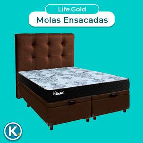 Cama Box Bau + Colchão Casal Molas Ensacadas Life Gold Paropas + Cabeceira Estofada - Nature | Off White | Gengibre