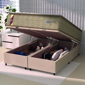 MODELO: Cama Box Baú Colchão Casal Queen Molas Guarda Costas Max Pillow Top 158x198x81cm