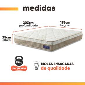 REVESTIMENTO INTERNO: Estrutura de molas ensacadas, que suportam até 160kg por pessoa, garantindo conforto e estabilidade ao dormir