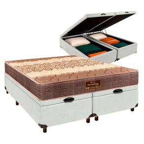Suporta até 120kg, ideal para uso frequente com firmeza equilibrada Base baú Queen com 42cm de altura e amplo espaço interno para organização