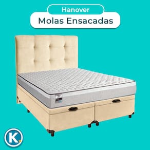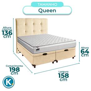 Cama Box Bau + Colchão Queen Molas Ensacadas Hanover Inducol + Cabeceira Estofada - Nature | Off White | Gengibre
