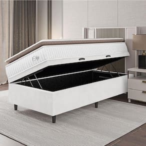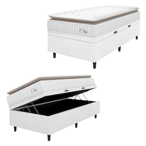 Cama Box Baú Colchão Solteiro Molas Ensacadas City Pillow Top 88x188x64cm Linho Branco / Bege Hellen Branco