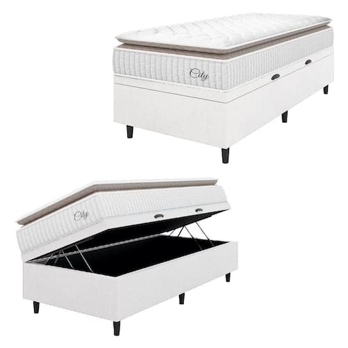 MODELO: Cama Box Baú Colchão Solteiro Molas Ensacadas City Pillow Top 88x188x64cm Linho