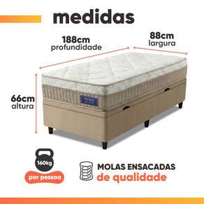 MODELO: Cama Box Baú Colchão Solteiro Molas Ensacadas Euro In Natural Confort 88x188x66cm Apolo
