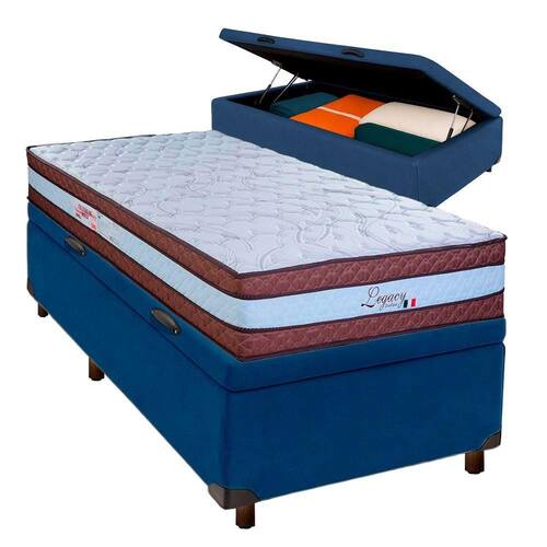 Cama Box Bau + Colchão Solteiro Molas Ensacadas Legaccy Paropas Conjunto Solteiro Colchão Legaccy + Cama Box Bau Colchão solteiro com 28cm de altura, oferecendo conforto elevado e visual moderno