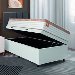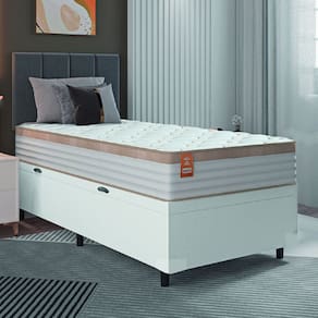 MODELO: Cama Box Baú Colchão Solteiro Molas Ensacadas Real 88x188x68cm Linho