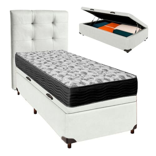 Espuma com suporte firme que auxilia no alinhamento da coluna Base baú solteiro com 37cm de altura e amplo espaço interno para organização