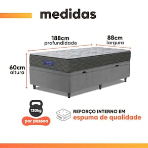 ITENS INCLUSOS: 1 colchão solteiro 0,88m, 1 box baú solteiro 0,88m