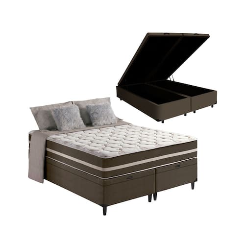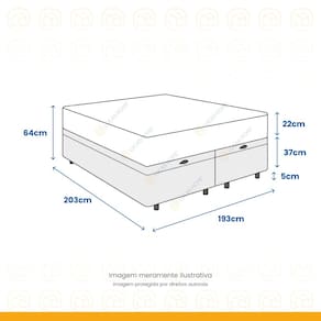 Fabricado com matéria-prima de qualidade, ele suporta até 120kg por pessoa, proporcionando conforto médio, o que lhe confere conforto extra durante o sono sem comprometer sua coluna. Base baú é confeccionada com madeira de reflorestamento com tratamentos anticupim e antimofo, o seu diferencial é seu compartimento interno garantindo um novo espaço em seu quarto, agregando um valor e sofisticação ao ambiente.