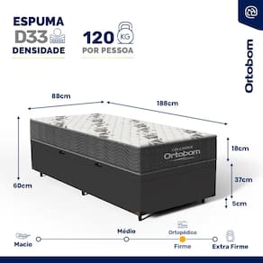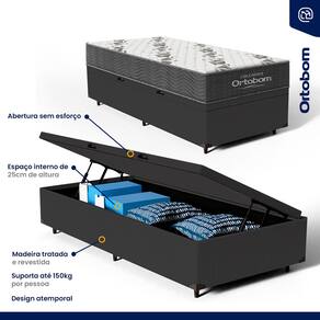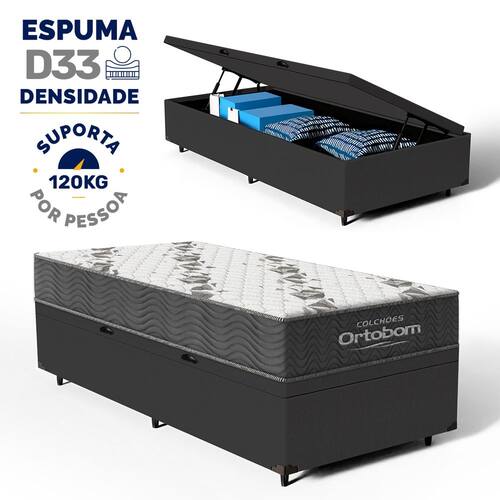 Cama Box Baú com Colchão de Espuma D33 Ortobom Airtech 100 Solteiro 88cm