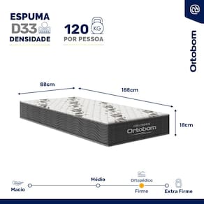 Buscando um colchão com conforto firme e suporte robusto? Nosso Colchão de Espuma D33 é ideal para quem precisa de um suporte consistente para o corpo. Com capacidade para suportar até 120 kg por pessoa, ele oferece a firmeza necessária para uma noite de sono reparadora, mantendo a coluna alinhada e reduzindo pontos de pressão.