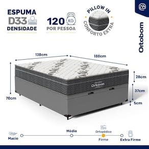 Buscando um colchão com conforto e suporte equilibrados? Nosso Colchão de Espuma D33, com pillow in para uma camada extra de conforto, é ideal para quem precisa de suporte firme. Suporta até 120 kg por pessoa, proporcionando uma base estável para um sono reparador.