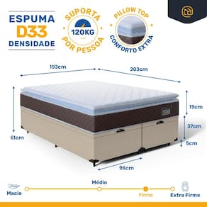 - Dimensões (larg. x comp. x alt.) Super King: 193x203x19cm.