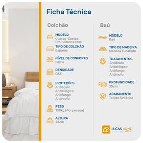 Estrutura em madeira tratada (base), Espuma D33 (colchão), Poliéster (tampo e laterais do colchão), Revestimento sintético (base)Está na hora de trocar aquele seu colchão antigo por um novo, cheio de qualidade, além de muita comodidade, agregando valor ao seu dia a dia e desfrutando do incrível conforto proporcionado. O Colchão Queen Guarda-Costas ProEvidence Plus da Probel é produzido com espuma D33, tampo e laterais em poliéster. Possui Pillow Top, que dá maciez extra e a tecnologia ONE FACE, permitindo que o colchão não seja virado, que oferece mais tempo útil de uso. O produto tem um conforto firme, que garante equilíbrio para suas costas ao deitar-se e não serem prejudicadas. Com este produto você tem durabilidade, qualidade e beleza em um só item.