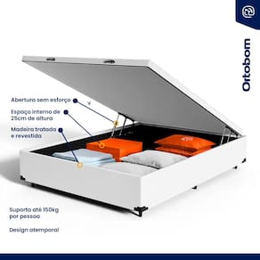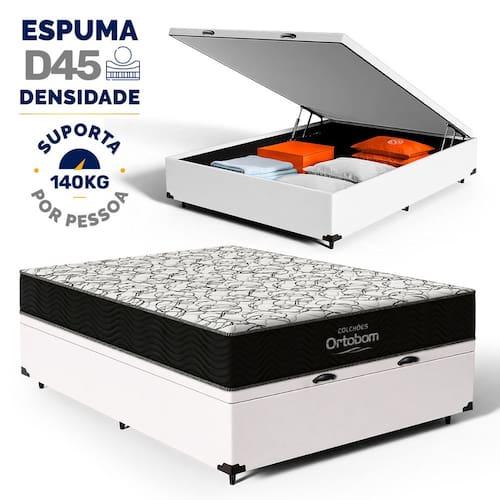 Além do colchão, a base baú incorporada aumenta a funcionalidade do seu quarto, oferecendo um espaço de armazenamento adicional. Construída com madeira tratada, tornando-a não apenas prática mas também durável e resistente. Este conjunto é a solução perfeita para quem busca maximizar o conforto e a utilidade em espaços compactos.