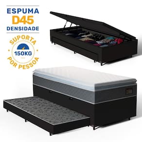 A Base Baú com Auxiliar da Lucas Colchões combina praticidade e durabilidade. A cama auxiliar embutida é uma solução inteligente para otimizar espaço, ideal para visitas ou famílias grandes. Fácil de manusear, pode ser utilizada sempre que necessário e guardada discretamente, mantendo o ambiente organizado. O baú com um super espaço interno, ideal para guardar roupas de cama, edredons, travesseiros, mantas, toalhas e etc. É perfeita para quem busca otimizar espaço sem abrir mão da qualidade e resistência.
