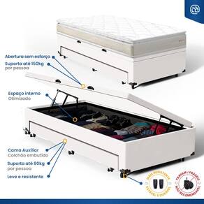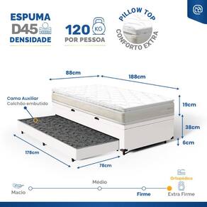 Cama Box Baú com Colchão de Espuma D45 Pillow Top Ortopédico Domo + Auxiliar Solteiro 88cm - Branco