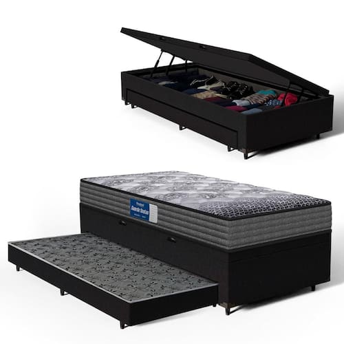 A Base Baú com Auxiliar da Lucas Colchões combina praticidade e durabilidade. A cama auxiliar embutida é uma solução inteligente para otimizar espaço, ideal para visitas ou famílias grandes. Fácil de manusear, pode ser utilizada sempre que necessário e guardada discretamente, mantendo o ambiente organizado. O baú com um super espaço interno, ideal para guardar roupas de cama, edredons, travesseiros, mantas, toalhas e etc. É perfeita para quem busca otimizar espaço sem abrir mão da qualidade e resistência.