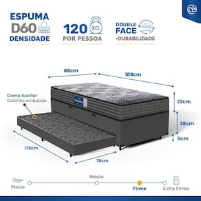 - Dimensões do produto (larg. x comp. x alt.) Solteiro: 88x188x44cm.