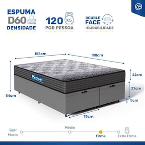 - Dimensões (larg. x comp. x alt.) Queen: 158x198x42cm Bipartido(2 Partes de 79);