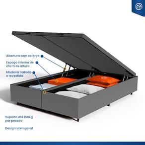 Procurando uma base de cama que ofereça não só suporte robusto mas também soluções práticas de armazenamento? A base baú da Lucas Colchões é perfeita para quem precisa otimizar o espaço no quarto. Ideal para guardar roupa de cama, travesseiros ou qualquer outro item que precise de armazenamento extra. Facilidade de transporte e instalação em locais com acesso limitado, como escadas estreitas e elevadores pequenos. Essa característica torna a base bipartida ideal para apartamentos e casas com espaço de circulação restrito.